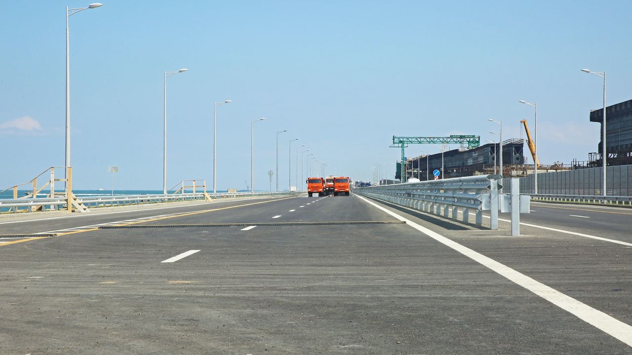 СПРАВКА. Крымский мост – один из крупнейших мостов в России, его протяжённость 19 км. Трасса начинается на Таманском полуострове, проходит по острову Тузла, пересекает Керченский пролив и выходит на крымский берег. Стоимость строительства – 227,92 млрд рублей. В 2019 году планируется открытие двух ж/д путей с пропускной способностью до 47 пар поездов в сутки. Президент РФ Владимир Путин трижды посещал «Стройку века».
