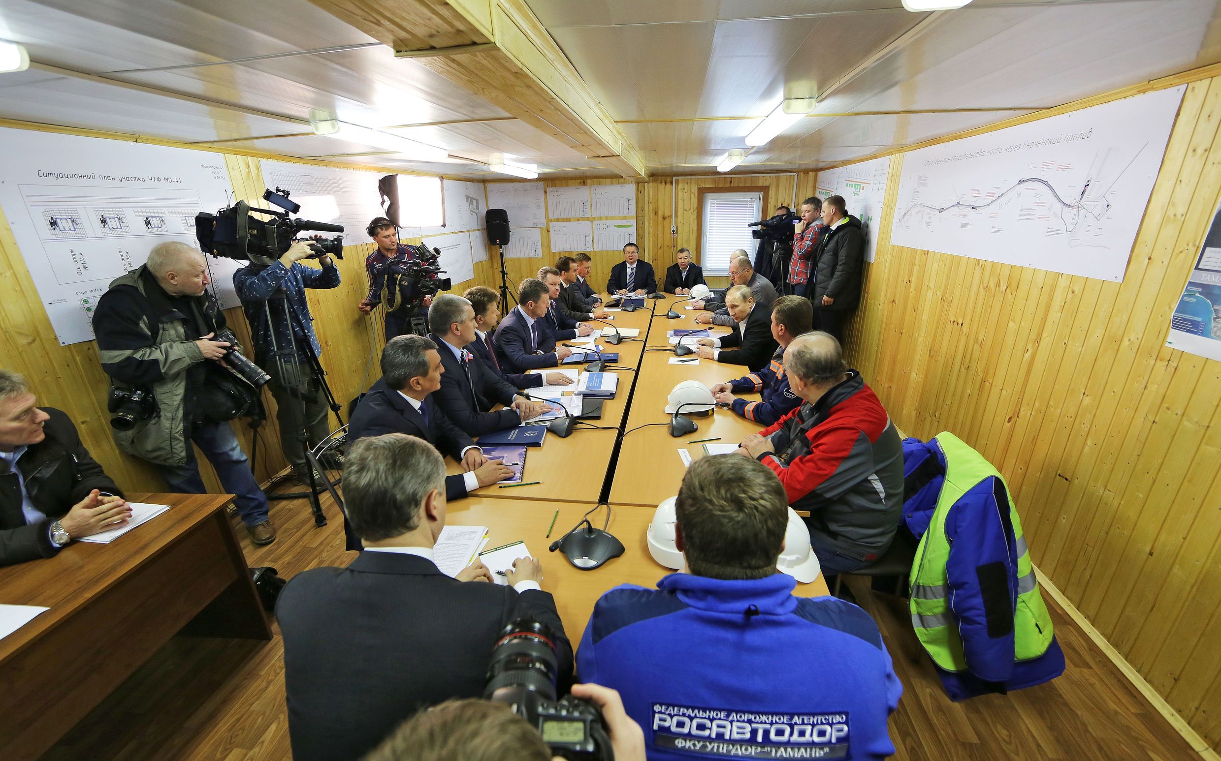 По словам Владимира Путина, ключевым объектом, который поможет в полной мере задействовать богатейший потенциал Крыма, станет Керченский мостовой переход. «Мост соединит Крым с материковой Россией автомобильной и железнодорожной магистралями, интегрирует полуостров в национальные транспортные потоки, повысит связанность российских территорий и, безусловно, создаст дополнительные возможности для экономического роста. Над возведением моста трудятся опытные специалисты из Крыма, Севастополя, многих других регионов страны. Уверен, что все задачи будут выполнены на высоком профессиональном уровне. Сейчас начат основной этап строительно-монтажных работ, ему предшествовала длительная подготовка. Были выполнены сложные проектные изыскания, возведена обеспечивающая инфраструктура, проложены технологические дороги и рабочий мост – даже, можно сказать, не один мост: с двух сторон если смотреть, то два или три, – и дороги. Развёрнуты вахтовые городки для строителей, а также проведено разминирование и археологические исследования территории, отведённой под будущее строительство», – отметил Президент.