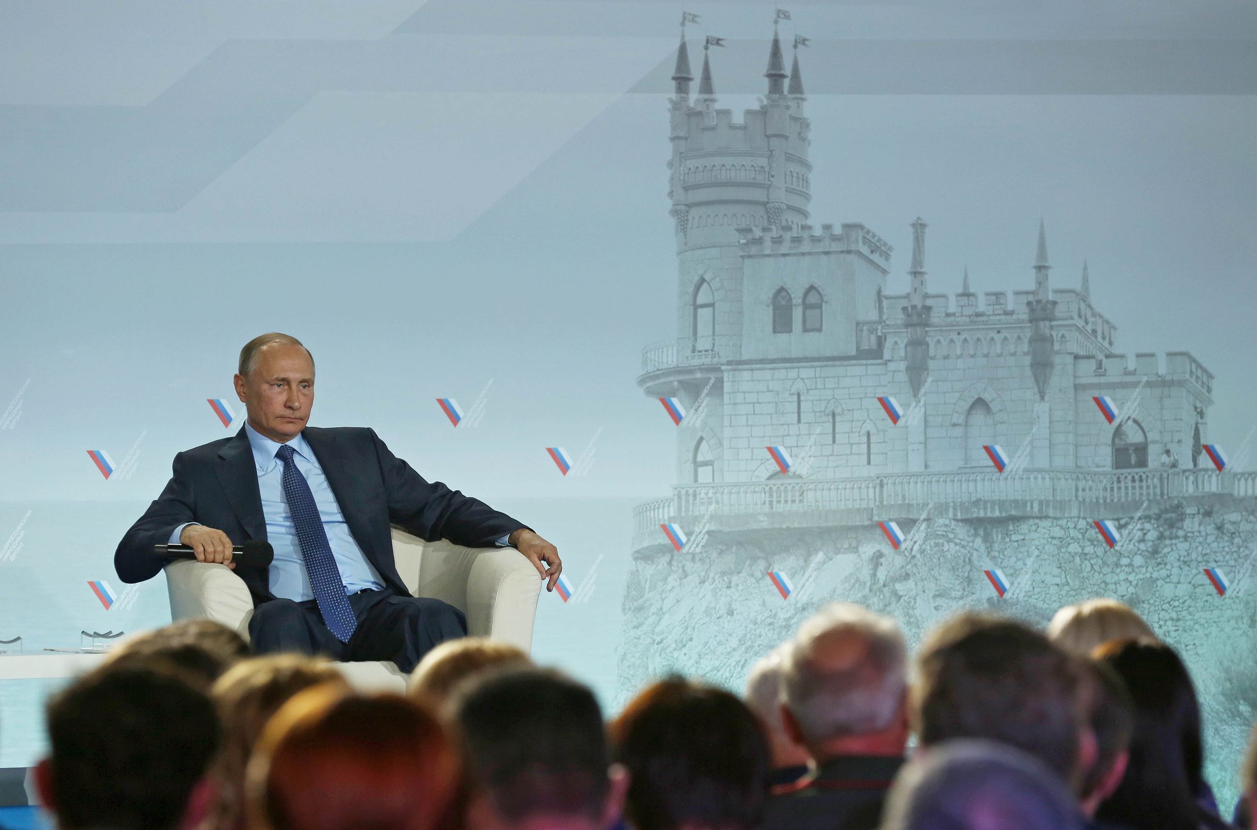 Выступая на пленарном заседании, Владимир Путин заявил о значимости проведения данного форума на территории Республики Крым. «Общероссийский народный фронт проводит уже третье мероприятие. Мы знаем, как много среди крымчан и севастопольцев активных людей, неравнодушных, с активной позицией, искренне болеющих и переживающих за судьбу Крыма и за судьбу России в целом. Самое яркое подтверждение этому – события весны 2014 года, когда люди сами определили свою судьбу, сами решили, где и как они хотят жить. С того момента была проведена масштабная и трудоёмкая работа по интеграции РК и Севастополя в единое правовое, экономическое и социальное пространство России. Это непростая работа: в сжатые сроки сняты вопросы энергетической, водной блокады полуострова, хорошими темпами идёт строительство транспортного перехода через Керченский пролив, рассчитываем, что и подходы к мосту и вся необходимая сопутствующая инфраструктура также будут сделаны качественно и в срок. В реализации этих проектов, в решении других насущных вопросов важную роль сыграл вовлечённый, деятельный настрой самих жителей Крыма и Севастополя, их энергия и нацеленность на результат", – сказал Президент.